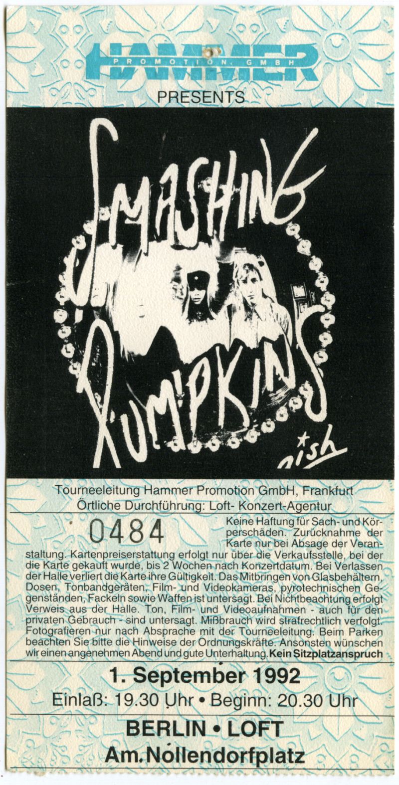 Gish Item Details Item Category: Print Artist: Smashing Pumpkins Format: Ticket Release Type: Tour Release Date: 1992.09.01 Release Country: Germany Manufacture Country: Germany Package: Paper Label: -None- Release Code: UPC: Matrix Code: Other Code: RPM: Amount Pressed: Unknown Additional Information Item Art