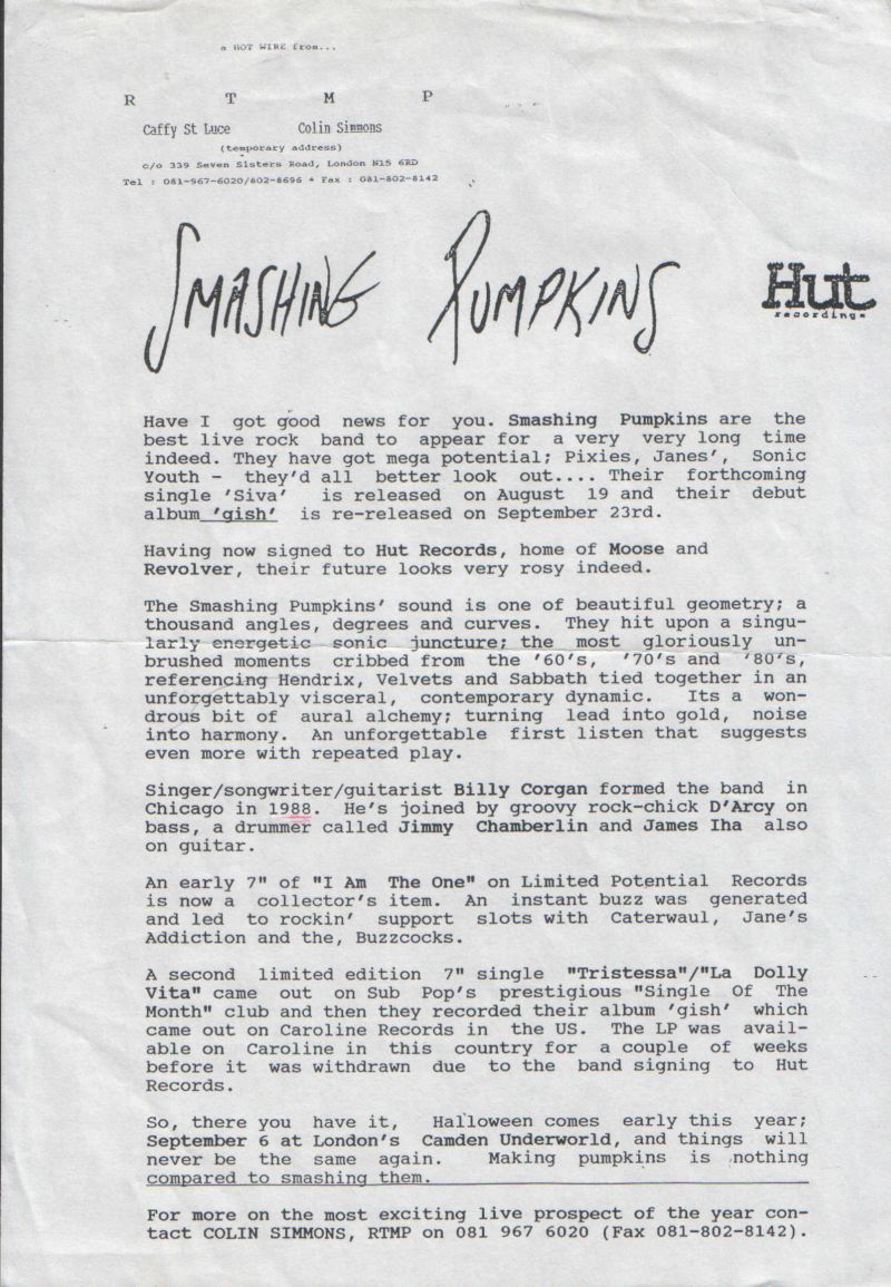 After deleting the Caroline release of Gish in the UK, it was re-released by HUT.