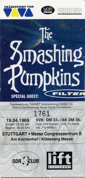 Mellon Collie And The Infinite Sadness Item Details Item Category: Print Artist: Smashing Pumpkins Format: Ticket Release Type: Tour Release Date: 1996.04.19 Release Country: Germany Manufacture Country: Germany Package: Paper Label: -None- Release Code: UPC: Matrix Code: Other Code: RPM: Amount Pressed: Unknown Additional Information 1969… uhu… Item Art