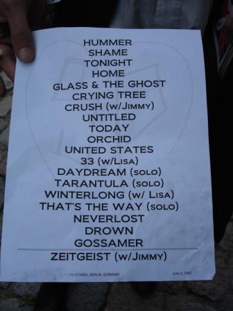 Zeitgeist Item Details Item Category: Print Artist: Smashing Pumpkins Format: Setlist Release Type: Tour Release Date: 2007.06.05 Release Country: Germany Manufacture Country: Germany Package: Paper Label: -None- Release Code: Europe Tour 2007 (secret gig) UPC: Matrix Code: Other Code: RPM: Amount Pressed: Unknown Additional Information Item Art