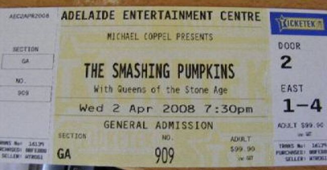 Zeitgeist Item Details Item Category: Print Artist: Smashing Pumpkins Format: Ticket Release Type: Tour Release Date: 2008.04.02 Release Country: Australia Manufacture Country: Australia Package: Paper Label: -None- Release Code: UPC: Matrix Code: Other Code: RPM: Amount Pressed: Additional Information Item Art